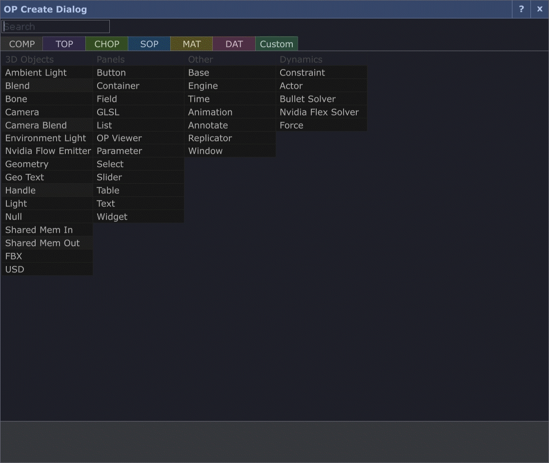 TOP (Texture Operator) : travaillent avec les images et vidéos 2D.