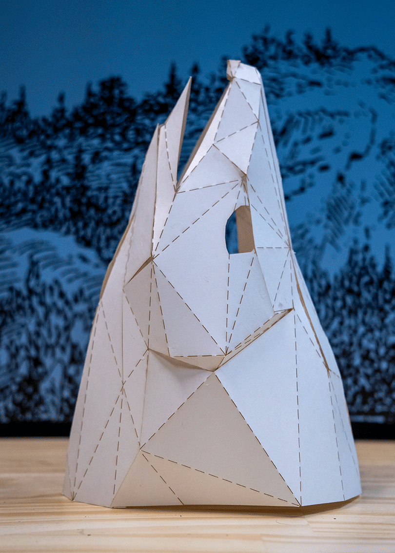 Le loup-garou est une figure commune dans les légendes québécoises. L’inspiration pour cette tête est venue d’un modèle de loup trouvé dans Thingiverse. Au lieu de l’imprimer avec une imprimante à filament, vous pouvez la découper avec la découpe au laser et l’assembler à la manière d’un casse-tête en trois dimensions.