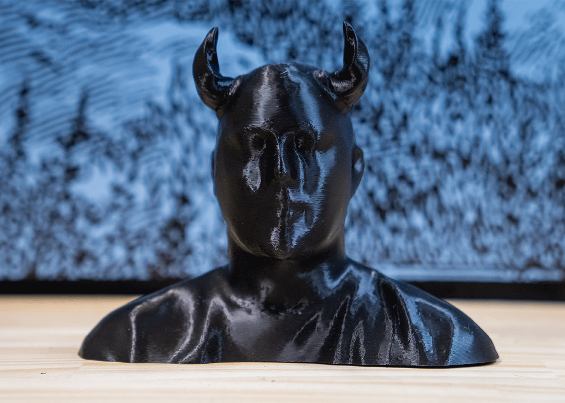 Le diable est au centre de nombreuses légendes québécoises, comme La chasse-galerie. Cette tête est inspirée de celle d’un collègue. Nous avons ajouté des cornes.